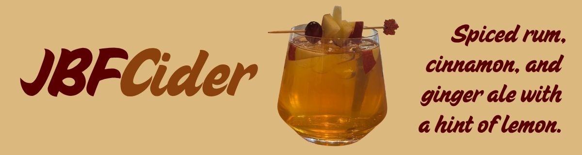 Time to get cozy! Savor our limited-edition JBFCider Spritz—a delicious cider, mixed with spiced rum, cinnamon, ginger ale with a hint of lemon. It's like autumn in a glass. $15 nonmember/$13.50 members.